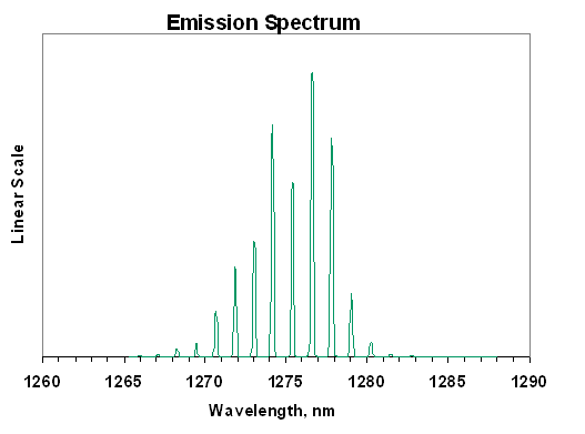 法布里-珀罗(Fabry-Perot,FP)激光二极管(Laser Diode, LD)是一个腔内包含FP腔结构的发光二极管,其结构决定了其输出是多纵模的。FP激光二极管输出光功率大、发散角较小、光谱较窄、调制速率高,因此适用于长距离光纤通信领域。