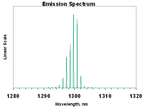 法布里-珀罗(Fabry-Perot,FP)激光二极管(Laser Diode, LD)是一个腔内包含FP腔结构的发光二极管,其结构决定了其输出是多纵模的。FP激光二极管输出光功率大、发散角较小、光谱较窄、调制速率高,因此适用于长距离光纤通信领域。
