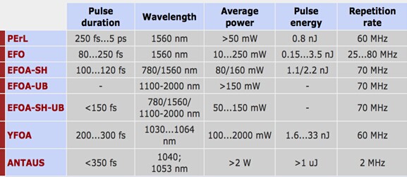 nn EFOA-SH-UB激光系统在一个平台上结合多个激光源:EFOA掺镱飞秒锁模光纤激光器(1560 nm输出),超连续谱发生器(1100 - 2000 nm)和二次谐波发生器(780 nm)。三个波长可以同时操作以及切换输出模式。